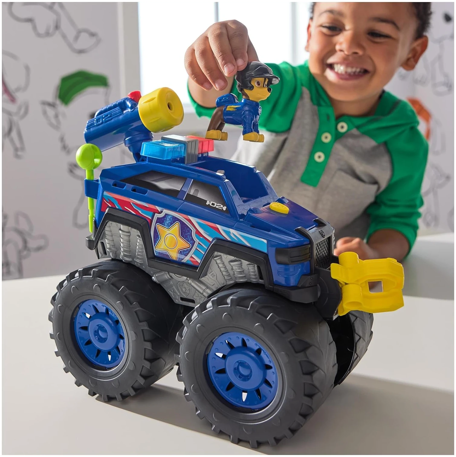 Les missions de sauvetage ne sont pas toujours simples, et parfois, il faut éliminer des obstacles pour atteindre les amis en difficulté. C’est là que le lance-projectiles entre en jeu. Le monster truck de Chase est équipé de deux projectiles et de ports de stockage spéciaux. En un simple geste, votre enfant peut charger les projectiles, appuyer sur le bouton, et voir les obstacles disparaître sous leurs yeux. Une fonctionnalité qui ajoute encore plus de dynamisme et de plaisir aux jeux de rôle.